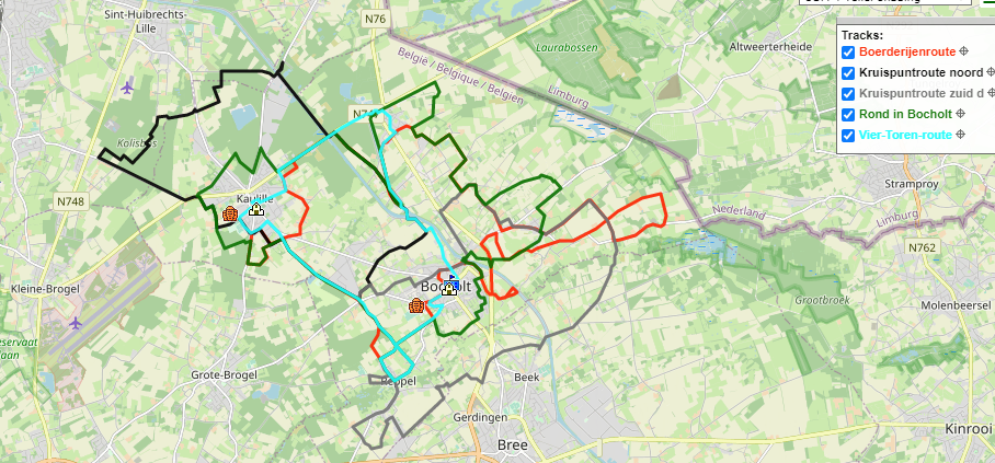 We fietsen in de provincie Limburg, meer bepaald in de regio Bocholt en omstreken.
