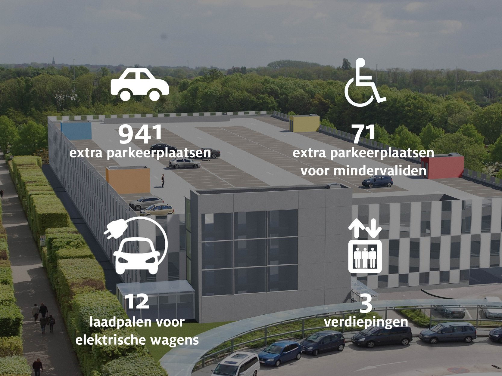 Nu kunnen we een grote verbetering voorstellen met een parkeertoren van 941 plaatsen.